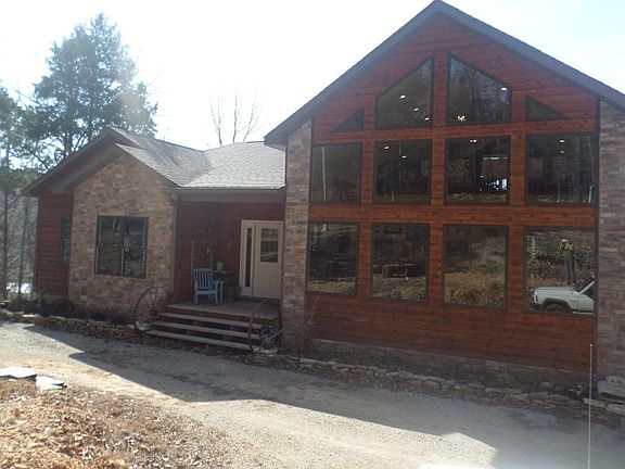 Custom built 1 1/2 story, 3 bedrooms, 2 1/2 bath home with basement. Located on 5 Wooded Acres just 1 mile from Dawt Mill. Cedar siding, Rock accents, 9x32 deck, panoramic views available from numerous windows, natural rock landscaping, fire pit. Step on inside to laminate wood flooring, vaulted ceilings, granite countertops, farmhouse sink, dual ovens, cooktop, pantry, dining room, loft bedroom, master suite featuring dual vanities with laundry room and walk-in closet. Down the stairs to the basement you'll find a bedroom, full bath, washer/dryer hookups and 2nd kitchen, walk out door and 1 car garage. Plus, large storage area. 2x6 exterior walls, Spray foam insulation, Dual heat system. 40x60 insulated shop with 220 power, septic system and 700 sq. ft. living quarters. Bed/Bath/Laundry.