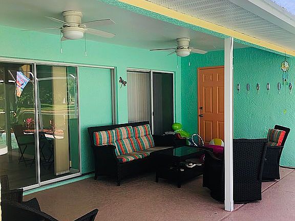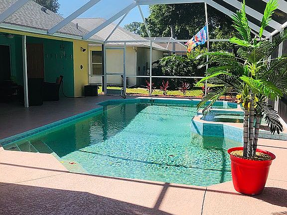 Completely repainted and remodeled inside and out. Desirable Key West style. Huge screeened in porch with pool and jacuzzi. All new landscaping outside front and back. All carpet replaced with wood floors. Backyard view is spectacular with gorgeous sunsets over the stocked lake nightly!