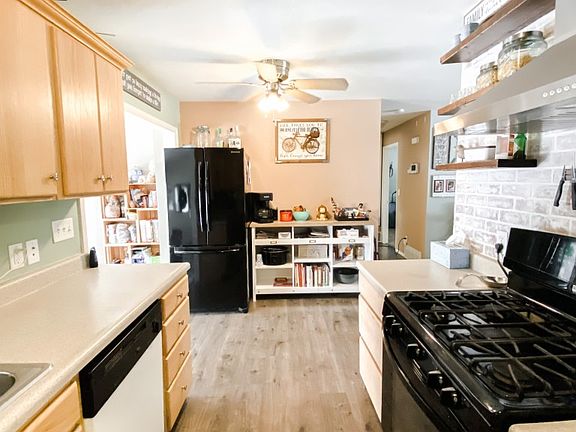 Don't miss this cute brick home with big mature trees for plenty of shade to relax on hot summer days! This home boasts lots of natural light on the main floor, and even has a beautiful, bright sunroom off of the kitchen. This farmhouse style kitchen has gorgeous whitewashed brick accents, wood floating shelves, laminate floors, updated vent hood, gas stove, and wood cabinets. The fully updated bathrooms are a must see. The subway tile, and farmhouse feel and wood accents, are so fresh and beautiful. You will find 2 beds, and 1 bath, both upstairs and downstairs. The downstairs has another living area where you can entertain, watch a movie, or let kids have a big playroom. It also has updated LVP flooring in parts of the basement. It is situated on a quiet, low traffic road, but is still only minutes away from town. Let's make this home yours!