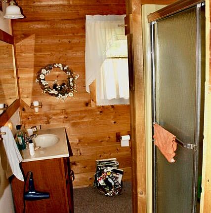 Elevated views of beautiful Manistee River. 200' frontage adjoining state land. 1,120 sq. ft. Ranch with vaulted ceilings in Great Room, fireplace, Door Wall onto waterside wrap around deck. Full basement plus 28 x 40 detached garage. New well just installed. Exterior of house and garage just painted. 8 x 22 Three Season porch. Knotty pine interior walls and ceiling. covered river side deck 8 x 28.