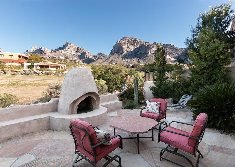 Unobstructed views from this Oro Valley Townhome! Featuring 2 bedrooms,den and 3 baths, 2160 sq ft. Beehive fireplace, Viga beam ceiling, Southwest style with high ceilings. Large master bedroom and bath. East facing backyard and patio to enjoy the views.
