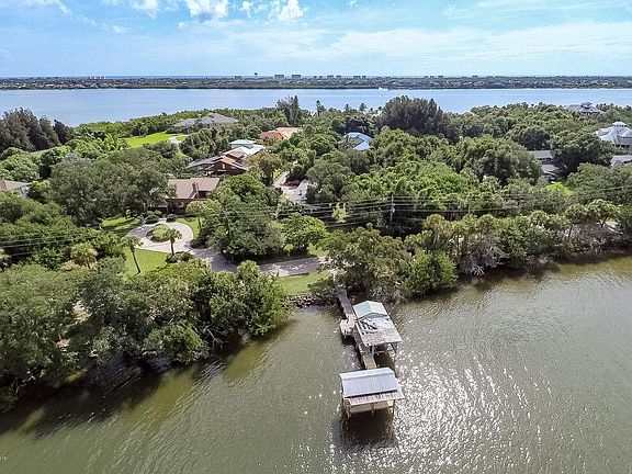 Amazing Price! Won't last! Charming Property on Tropical Trail with approx 122 feet of water frontage on the Indian River. Beautiful established trees line this wonderful lot. Tropical Trail is one of Brevard's most sought after locations and this property offers you so many different options. The current 1950's home is cozy, well maintained, nice floor plan, hardwood floors, cast iron stove and tons of Charm. Lots of room to add on or build your dream home. Deep water location on the Indian River and the dock features a covered boat area, covered viewing area and a storage area/cleaning station. Enjoy fishing in the river, watching the dolphins play and have the best spot for viewing the sunset every evening. Make your waterfront dream a reality.
