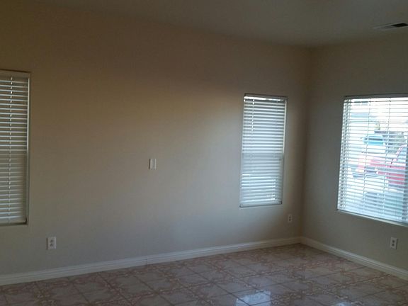 Fresh paint throughout house. Tile floors throughout house except for the three bedrooms - they have fairly new carpets (just professionally cleaned). Has laundry room with hookups for washer and electric dryer. Low maintenance yard with two fruit trees in the back yard (tenant is responsible for all yard maintenance). Small covered patio in back yard. Has sprinkler system. Two car garage. Forced air and heat. Very large driveway. You need to have a refridgerator. Hook ups are there. NO PETS allowed. No Pets. Owner pays for trash. All other utilities tenant pays (electrical, sewer, cable and water). Security Depost and first month's rent is required before moving in (no exceptions).