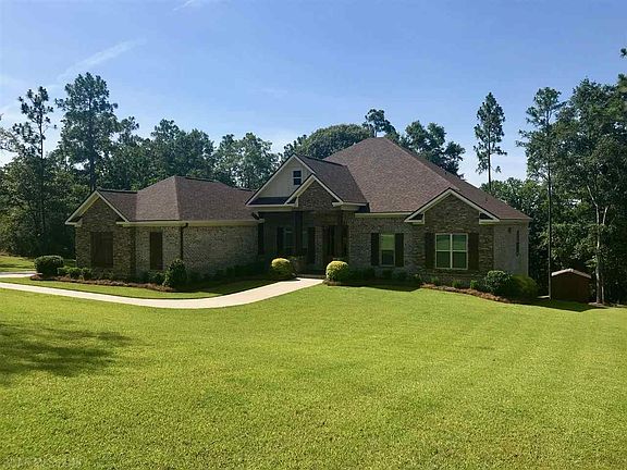 This custom built 4 Bedroom, 3 Bath home is located near Spanish Fort High School, Spanish Fort Middle School, Spanish Fort Elementary. Situated on a beautiful 3-acre private lot. In Spanish Fort's School system! Bonus Room could be 5th bedroom. Home includes an office and dining room. Open-concept kitchen flows into the breakfast area and into the family room. Large covered back porch overlooking a wooded landscape. 3 car garage with excellent curb appeal! Built by Matt Womble JMW Building, some of the marble, stone, and granite work is stunning. Large entertaining back porch with a brick wood burning fireplace complete with gas starter. The flooring in this house is simply amazing. The are so many amenities, and no expense was spared achieving this amazing look. Large, over-sized master shower, and custom tub. Set your appointment and spend lots of time taking in all the extras on this wonderful custom home.