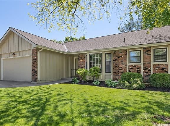 Charming Lenexa Ranch beautifully updated and move in ready! Stunning landscaping to go with newly painted exterior. Great room with brick masonry fireplace features vaulted cathedral ceiling with skylight. Formal dining front room lets in tons of natural light with its huge bay windows. Kitchen boasts painted cabinets and high quality vinyl wood flooring. Freshly painted master includes master bathroom, walk-in closet, recessed ceiling with fan and natural light flowing freely from windows featuring plantation shutters. Full basement has finished side with professionally polished concrete floors that includes a spacious den, half bath and 4th non-conforming bedroom that can also be used as an office or workshop. Enjoy the magazine cover worthy landscaping while relaxing on the sizeable covered deck in the back yard. 7yr old roof. Washer/Dryer on main level. All appliances stay! Walking distance to elementary school and conveniently located near I-35 and Oak Park Mall, restaurants, shops. This lovely home has it all. Ranch living at its finest!