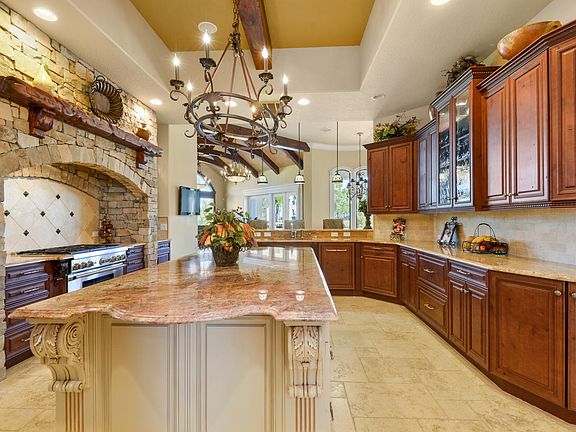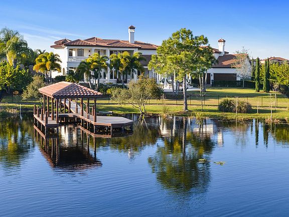 Magnificent Mediterranean Mansion on Lake Tibet Butler in Keene's Pointe is simply a "Work of Art!" Intricate architectural style, coupled with interior finishes that rival mansions from around the globe, this estate features 4BR suites with 4 Full Baths plus 2 Half Baths, along with all the formal and recreational rooms one would want! Exotic granite, custom wood and iron work throughout, stone accent walls and wood beams add amazing warmth to the home. Master Bedroom is located upstairs and has its own fireplace & balcony to enjoy the stunning views of the lake from up high -- a remarkably peaceful setting. Upstairs you will also find a second master bedroom, a media room for lounging and another spacious bedroom suite. Located downstairs is the formal handcrafted wood paneled study as well as a game room, guest bedroom suite, DR, LR, Kitchen and Family Room, with stone walled fireplace, which opens to the pool, outdoor living area and lake & conservation views. Fantastic summer kitchen and outdoor dining space is impressive, as is the resort style rock grotto pool with slide and cave (70,000 gallon pool is 8ft deep @ 38x65)! Massive covered lanai is paved with limestone and features a large hot tub and fire pit. Covered boat dock w/lift, large fenced yard and 4-car garage complete this estate package. This spectacular home sits on 1.5 acres and enjoys a private cove access to Lake Tibet Butler and sweeping panoramic views. (A 5th BR can be created for those needing an extra bedroom.)