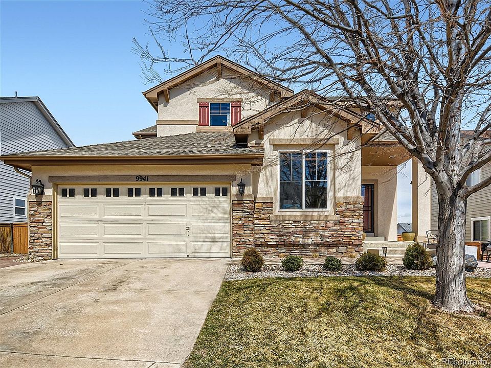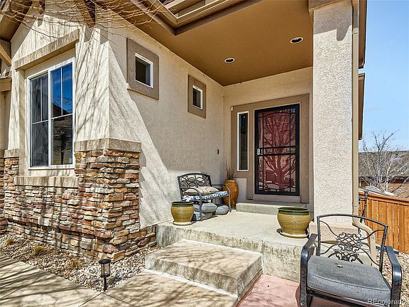 Enjoy unique nature of Trailmark in this home on cul-de-sac that dead ends into the Hogback with views galore both front and back. South facing drive for easy snow clearing, stucco exterior is low maintenance. New patio in front to relax street side. Kitchen remodeled 2021 with elegant finishes, slab backsplash, Bridgewood cabinets, undercounter lighting, smart integrated features, most cabinets power equipped for out of the way charging. Kitchen includes 48" Thermador 6 burner natural gas, stove side pot filler, double steam oven, panel covered wine refrigerator. Bosch appliances: counter depth refrigerator, dishwasher, drawer microwave.2021 remodeled FR with built in shelves and cabinets, show stopping 12x8' Jeld-Wen sliding glass door creating massive indoor/outdoor living space. FR has integrated speakers, natural gas fireplace. Large DR/living with 19' vaulted ceiling and updated lighting. Office space overlooks Hogback with adjacent 1/2 bath perfect for home office. Main BR suite has large expansive windows with water views of Chatfield Reservoir and Tech Center. 5 piece main bath, with both closets updated 2022 by California Closets. Heated tile floors, jacuzzi tub, rain shower. 2 additional BR's with Hogback views, adjacent 2 sink bathroom. 1400 sf walk out basement, integrated TV area with 5 speakers, 2 tier wet bar, 2 undercounter refrigerators, track lighting, guest BR with connecting bathroom, workout room, playroom, or home office. 2 levels of deck: main level 300 sq ft Trex with exquisite views, downstairs: large concrete patio. 60sq ft Tuff shed lean to. > 100K spent on recent remodel. Trailmark surrounded by JeffCo open space, Chatfield State Park, Denver Botanic Gardens. Within minutes you can mountain bike, hike trails, fish. An outdoor lovers dream!