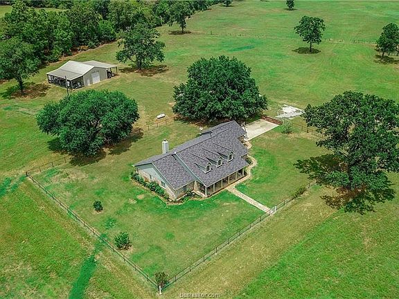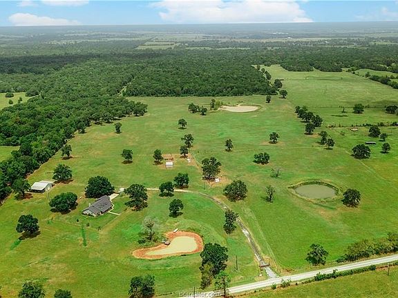 Madison County Ranch Available: Beautiful Custom Brick Home featuring 3 bedrooms, 2 full baths and 2 car attached garage on 46+/- Acres at Batson Rd., Normangee, TX. Home interior features include an island kitchen, Corian counter tops, stainless appliances, split plan, open concept living/ dining room/ kitchen, and gas log fireplace with insert. Property features 2 outbuildings, 30x40 Workshop (heated & cooled) on slab with electricity, 3 ponds - 1 in each pasture, large mature oaks, fence and cross fence for your cattle and hay production.