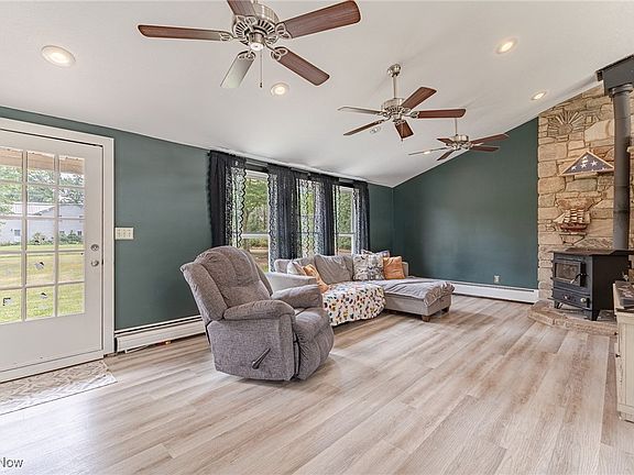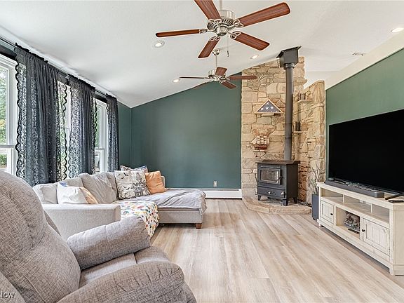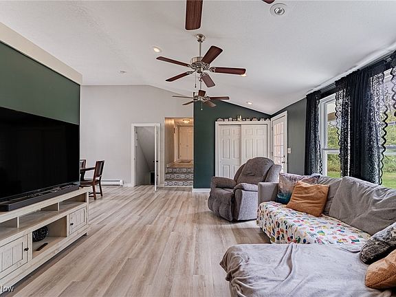 Introducing 9942 Bell Road, a generously proportioned split-level residence nestled in Newbury. This home underwent a complete renovation a few years ago with the roof being replaced in 2023, newer windows with a transferable warranty, wood siding, and a serene setting spanning over 2 acres. Offering 4 bedrooms, 2 full bathrooms, and over 3200 square feet of living space, it greets you with a welcoming living room featuring a vaulted ceiling, abundant natural light, and a cozy wood burning stove/fireplace. The living room seamlessly transitions into the dining room and kitchen, where skylight windows illuminate a breakfast bar, ample cabinetry, and a full suite of stainless steel appliances. Adjacent to the kitchen lies a sunlit sitting room with direct access to the back deck. Continuing through the home, you'll find a laundry room, home office, and entrance to the attached 2-car garage. The primary suite offers spacious comfort, accompanied by an ensuite full bathroom. Three additional bedrooms with hardwood floors share a well-appointed bathroom for convenience. The lower level hosts a versatile recreation room, an electrical room, and extra storage space. Outside, the property features a sprawling yard, an expansive back deck, and a backdrop of tranquility offering ample privacy.