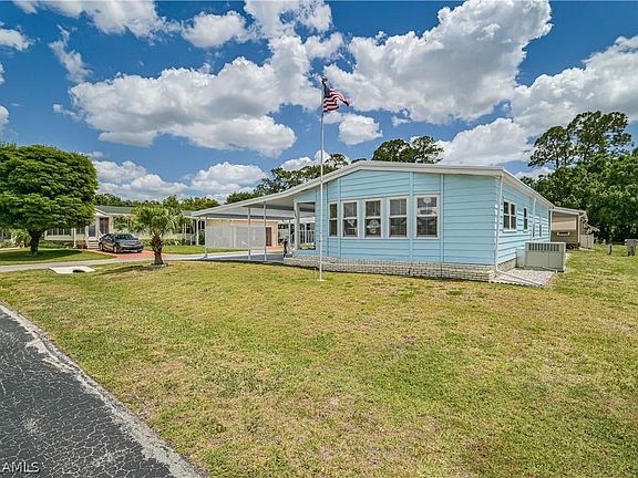 Best kept secret in Lee County! Country Lakes is a 55 and older hidden gem where you own the land with an extremely low HOA fee of $345.00 / Quarter! This resident owned community offers a Pool, Tennis, Bocce Ball, Shuffleboard, Dog Park, Pizza Nights, Cocktail Hours, Social Clubs, Cards, Fishing Pier and a Beautiful Clubhouse! This Open Concept home is light and airy and is in immaculate condition! This home has a newly remodeled Master Bathroom, Newer windows with plantation shutters, new refrigerator, newer windows in the lanai which is perfect for entertaining when friends come to visit. There is a newer Trane A/C unit and water heater. It has an extremely large two carports which is a big bonus when most homes only have one. There are two extremely large bedrooms and a laundry and office area, huge closets and lovely floors. The home comes partially furnished. It's close to I-75, the beaches, Downtown Fort Myers, Bonita Springs, Sanibel, and approximately a 15-minute drive to RSW airport. Come see this hidden gem today in this warm and friendly 55 and better community where you "own the land"!