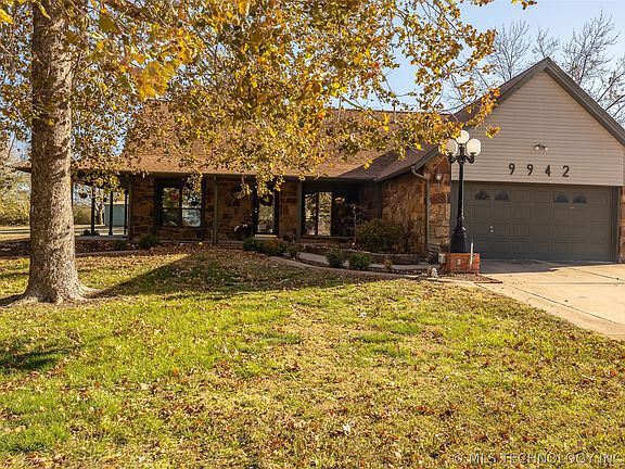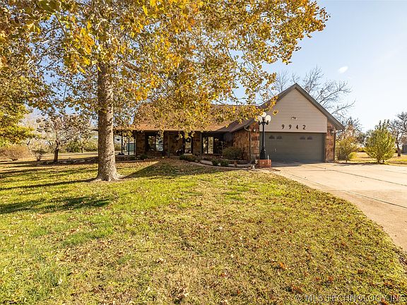 Picturesque, tranquil park-like setting on over 3 acres w/ lots of hobby space on a quiet cul-de-sac! Large pond in front w/ bridge, wrap around porch, pretty landscaping, mature trees plus greenhouse, 2 large shops (hangar+access to runway behind property also incl. heat/air + elec wrench) & a shed and fenced back yard area. This custom built home is set back from the road, providing privacy and has an XL living room w/ large wood-lined vaulted ceiling. Family room w/ beamed ceilings and large stone gas fireplace. Large dining room w/ tray ceiling and french doors to the exterior. Country kitchen w/ bar seating and stone alcove w/ cooktop. Master bath w/ jetted tub and double sinks. Large laundry room w/ sink. This property has everything!
