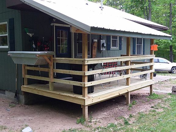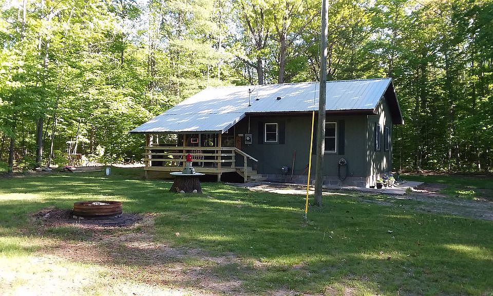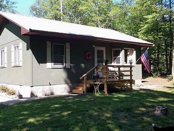 This cozy two bed, one bath home is situated on a quiet 0.69 acres of hardwoods backed up to state land on a private drive. Very efficient, with natural gas heat. Improvements made during Spring 2019 were a new kitchen, including Hickory cabinets, upgraded countertop and sink; metal roof extending to covered porch; exterior paint; addition to storage shed. Spring 2020 improvements include a slightly larger pressure treated deck off living room; exterior decorative wooden shutters on all windows. Winter 2022 - interior walls painted, including kitchen/dining, living room, bath. Home is located within a mile of ATV trails, snowmobile and cross-country ski trails that all lead to Black Mountain Recreational area. Multiple lakes offer great fishing, boating, swimming, and much more.