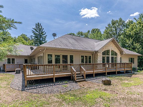 This is the home in Timber Ridge you’ve always noticed! Home & Vacant Lot (across road) included! Beautifully landscaped circular drive leads you to your dream home & sets the tone for this Timber Ridge masterpiece. Custom design and quality construction, with a floorplan everyone will love, featuring over-size rooms in every direction. Main level features an open-concept Great Room w/beautiful wood beams, cathedral ceilings & gas FP, large eat-in KI w/custom cherry cabinets, dining area, sunroom, stainless appliances, welcoming foyer, plus wrap-around deck. 3BR's including a Master Suite w/walk-in closet & full bath plus 1/4 bath & full bath. Att extra-deep 2 car garage htd/insul (new furnace), plus custom workshop w/shop office. Lower level has high ceilings and walkout, Living Rm, bedroom, full bath and large storage/utility area. See List of "Notes" for more details & updates. NG, Spectrum at property! Don't wait to see this Gem! https://www.timberridgewi.com/