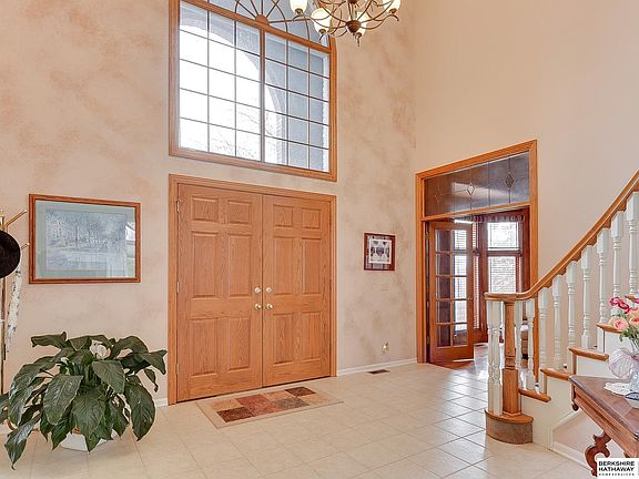 Contract Pending, on market for back up offers. Classic style in this 2-story home on a quiet cul-de-sac. The spacious entry with its grand staircase leads you into a welcoming, light-filled living room. Big mudroom as you enter from the garage with plenty of storage for family gear. Large rooms boast many special features including a cherry wood library, a hearth room, 3 fireplaces, a sauna, bonus room, and more. Convenient laundry room on the 2nd floor. Plenty of space for holiday gatherings or just daily living. The large deck is easy to maintain and extends the entertaining spaces of the main floor. The bedrooms all have walk-in closets and bath access. The lot is split, which gives the own an option of Westside Schools or Omaha Public.