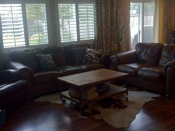 New construction, energy efficient, KB Model home. Built in 2010, and first occupied November 2012. An inviting open-concept floor plan with walnut hardwood laminate throughout the main areas of the house. 4 bedrooms are carpeted. The bonus room could be used as an office or nursery, and has the wood floors and French doors. Master bedroom has a generous walk- in closet and master bath (with soaking garden tub, shower, detailed shower tiles, double vanity, and espresso cabinets). The main bathroom of the house also has a double vanity, espresso cabinets, and a glass enclosed shower. The kitchen has an open-flow into the living and dining area, and is perfect for entertaining. The kitchen island has seating, storage and power outlets, so it's functional as well as beautiful. All of the kitchen cabinets at the lower level have smooth-glide pull out drawers, and all cabinets are espresso color made of real wood. Custom window treatments come with the home as well. The front and back yard are landscaped and include a Raindial sprinkler and drip system. The back patio is concrete and there is a gas line directly off the back patio for grill hookup. The two car garage is finished and roomy. PG&E energy bills average $100/month because the house features energy star appliances, water-heater, and upgraded Carrier AC unit. A must-see custom home that is ready for you to see!