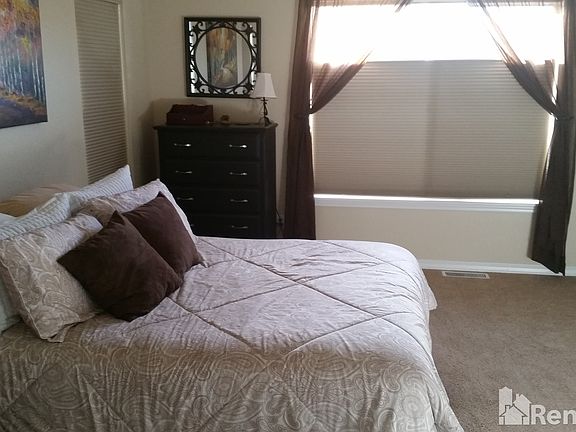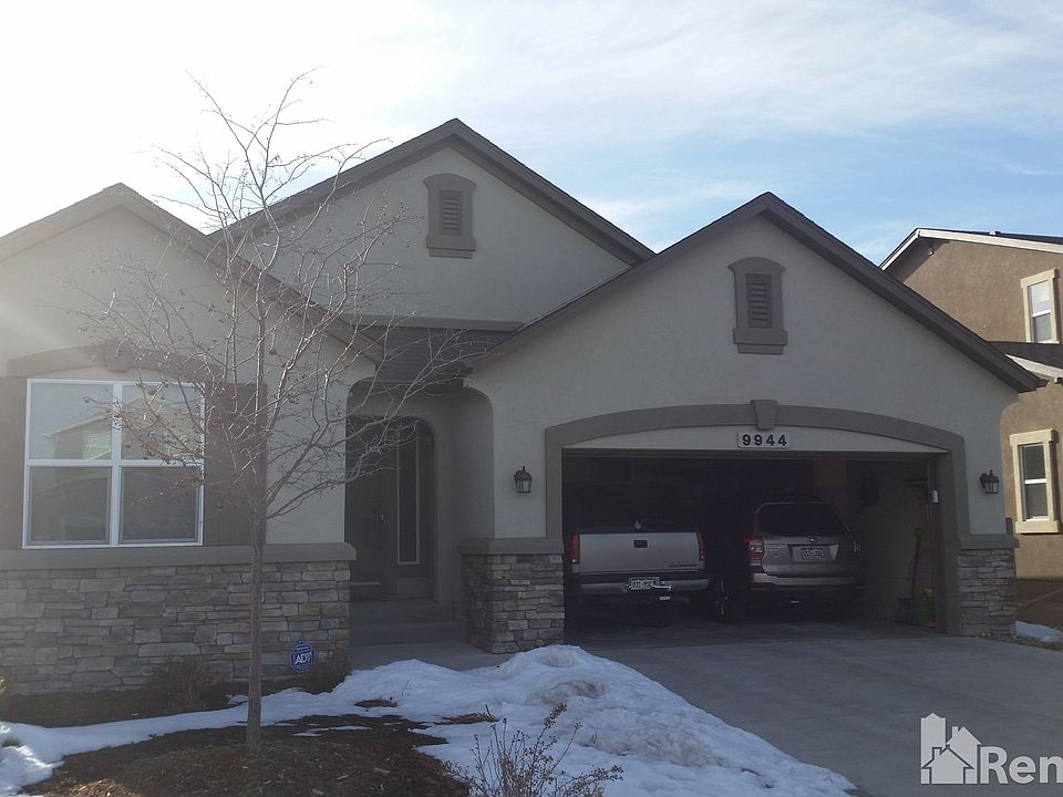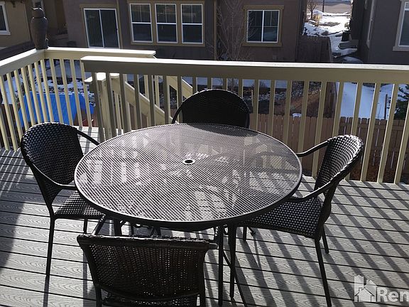 Built in 2011, this 3200 sq. ft. 4 bedroom, 3 bath ranch-style home is located on a family friendly cul-de-sac and across the street from D-20 Chinook Trails Elementary school. The Cordera clubhouse is 2 blocks away and membership is included in the rent. The floor plan is an open style with kitchen, utility room, master bedroom, office/play-room, and 2nd bedroom/bath opening into a central living area. The walkout basement has a wet bar, living room with space for a ping-pong table or pool table, 2 bedrooms and a bath. The yard has been completely xeriscaped and features a covered deck and large patio at the walk-out level. The house also has a radon-mitigation and security system. Available June 1st, 2016. NO SMOKING. Pets OK with additional deposit.