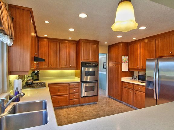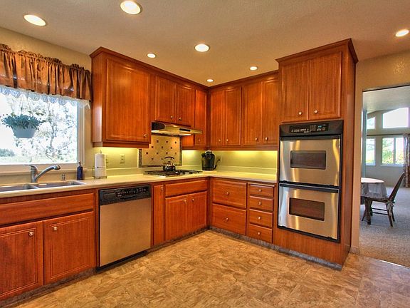 Contemporary Oak Hills home on a huge tree lined lot with views of the greenbelt & hills beyond. Remodeled kitchen & updated bathrooms, newer roof & windows. Formal living & dining room, cozy family room with dramatic corner fireplace adjoining sunny kitchen. Spacious master suite with vaulted ceilings, his & hers vanities & closets and jetted tub. Huge lot, expansive decking, lawn area & a "secret garden" filled with flowering shrubs & fruit trees and wild bird habitat. Room to park large vehicles & toys.