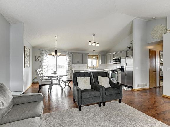 Many updates throughout stunning 5 BR home! Beautiful stone work on entry leads to welcoming foyer. Vaulted ceiling living room with gas fireplace & sunny view. Updated Kitchen w/ quartz, SS, tile back splash, breakfast area & formal dining. All bathrooms modernized w/ tile surround & flooring. Double closet in owner's suite. Lower level walkout to fully fenced-in backyard, kids playset & brand new oversized cedar deck. Located in amazing school district, near parks, soccer fields & trails.