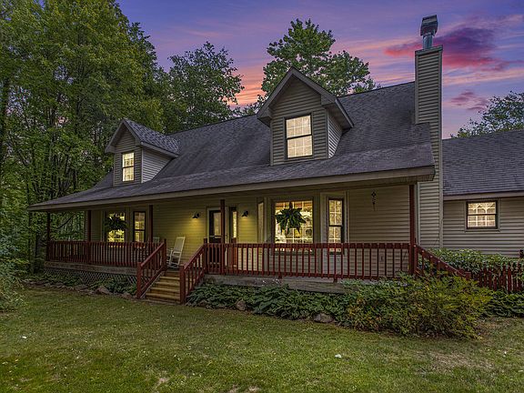 Price reduced to sell! This 5 bedroom, 3.5 bathroom cape cod style home sits on 15.27 wooded acres, and offers true privacy and tranquility. Just 30 minutes from Kalamazoo, or 43 minutes from Grand Rapids, it's a great option for those looking for country living. Hunt deer and turkey, just out your back door! An attached 2 car garage, walkout basement, fireplace, outdoor play structure and shed all add to the appeal of this classic and spacious home.