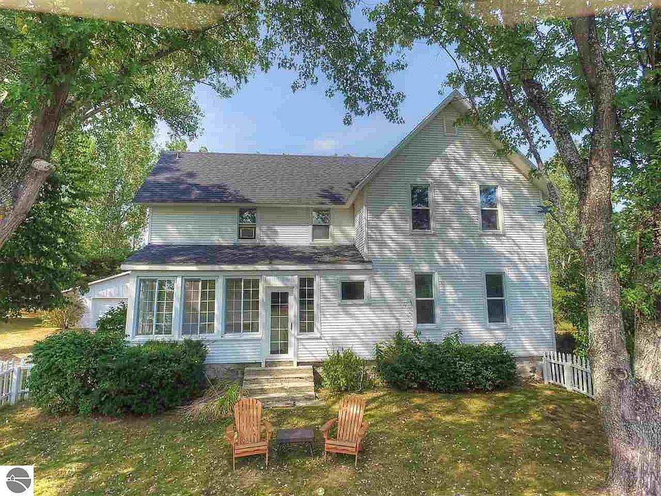 Century farmhouse and historic barn on 2.94 acres in the heart of Leelanau County, just 5 minutes from the Village of Suttons Bay. This property provides an idyllic setting for country living. Recent updates carefully meld modern conveniences with the stately design of a by-gone era including high ceilings, solid maple floors, original doors and hardwood trim throughout. A gracious kitchen and dining room provide optimal space for gathering family and friends. Multiple charming sanctuaries include a sun-porch, kitchen window seat and second story landing. One full bathroom on the lower level with three bedrooms and a second full bath located on the second level. A detached, over-sized two-car garage, two-story barn, and outbuilding afford many opportunities for animals or farming.