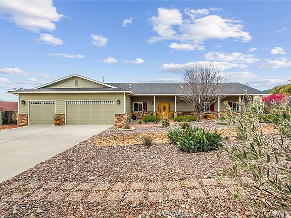 The backyard is a private paradise, featuring a covered patio with curtains, a built-in pool and with an all around wrought iron fence for safety, recently stained concrete in pool area, and a variety of fruit trees on the property: including peach, plum, cherry, fig, apple, lime, apricot, and pomegranate trees. Additionally, the backyard includes a 30 x 30 workshop, a fenced garden area with three raised beds, large pine trees, Cabernet vines, and water lines with timers for all trees.