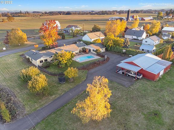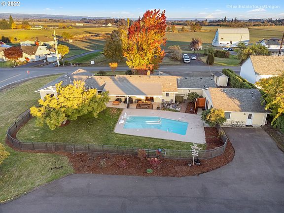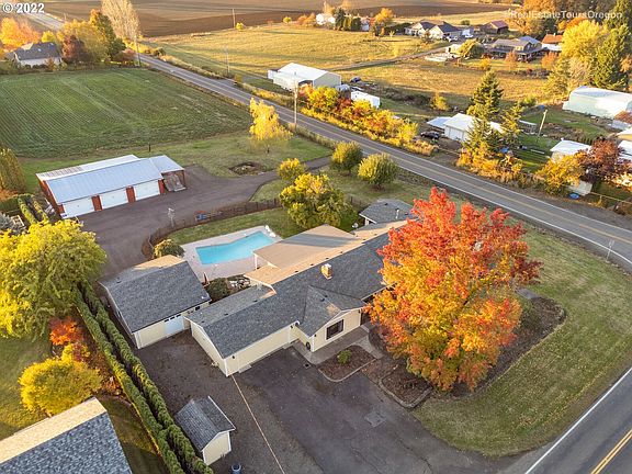 This gorgeous one-level county home is located in the peaceful community of Roy w/ Mt Hood views out the front & sunsets over the coastal range! The main house features two living spaces, updated kitchen/baths, a primary bedroom suite w/ custom closet, heated bathroom floors & opens to a patio/pool area. Delightful guest house/ ADU is Airbnb & fully permitted! Room for everything. 40x45 shop, newly paved second driveway for ease of RV/Boat storage, athletic court & well maintained in-ground pool