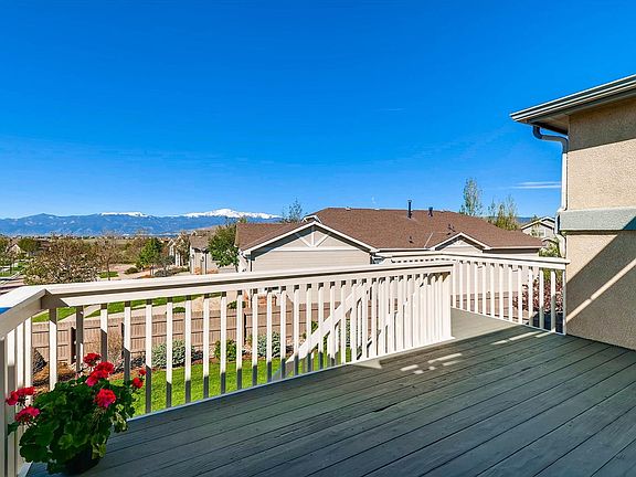STUNNING 5 Bed, 3 Bath Ranch home located on a Quiet Cul-de-sac, Corner Lot in the Desirable Pine Creek Neighborhood & D20 School District! INCREDIBLE VIEWS of Pikes Peak from Main Level and Walk-Out Deck! Open Floor Plan w/Hardwood Floors; Large Kitchen, Gas Fireplace & Windows Galore! Master Bedroom w/2 Walk-In Closets & 5-Piece Bath; 2 Add'l Bedrooms/Office on Main Level and Large Laundry Room! Garden Level Basement w/Family Room, 2 Beds, Full Bath & HUGE Storage Room! Deck opens to Breathtaking Views & Professionally Landscaped Back Yard! New Interior Paint & Carpet (2017), New Roof (2016), Central A/C, Custom Window Coverings, Sprinklers, Deck Awning, Radon System, Sump Pump, 2-car Over-sized Garage w/Storage & Shelving. Close to the elementary school & middle school! Conveniently located near shopping, restaurants & a quick commute to both I-25 and Powers. Near Pirate's Cove Splash Park and playground for residents of Pine Creek & new John Venezia Park. Move-In Ready!