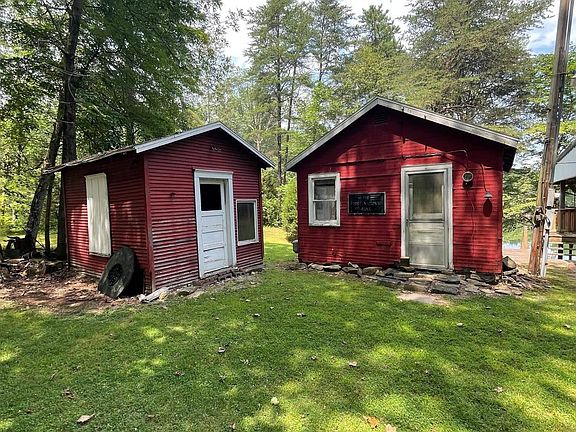 Overlooks the water, 2 bedrooms, 1 1/2 baths, Open concept Living room & Kitchen, Covered back deck 34 ft. x 17 ft., 3 storage sheds. Total electric. Metal covering over trailer for roof protection and to cover deck. Largest single lot in Pine Bluff. Dues $ 150.00 a year for road maintenance. Owner will remove all items from the trailer.