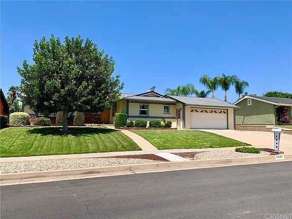 Welcome home! Wonderful Northridge Single Story Home located within the much in demand "Granada Hills Charter High School" district and offers RV access and "TWO" 2 car garages (one attached, one detached) perfect for all your toys or a possible ADU unit! This 3 bedroom (dining room could be converted to a 4th bedroom if needed), 2.5 bath home with 1,789 square feet of living space is on a large 11,048 square foot lot with cost saving and energy efficient solar panels (owned, not leased), solar H20 heater and a tank-less water heater, in addition to upgraded dual pane windows and a 6 month old HVAC system. The living room has a nice fireplace, and opens to a large step-down bonus room with beautiful wood beamed ceilings. A cooks kitchen has solid surface counter tops, tons of cabinet space, a breakfast area and built-in appliances. Hardwood floors in the hallway and under carpeting. The spacious master suite boasts a private bathroom and 2 mirrored wardrobe closets, and secondary bedrooms are ample sized. Manicured rear yard with gated driveway, covered patio, BBQ and lush grassy area. Additional amenities include: 1 year old refrigerator, indoor laundry room, and hardwood floors in the hallway and under carpeting. This one is a Must SEE!