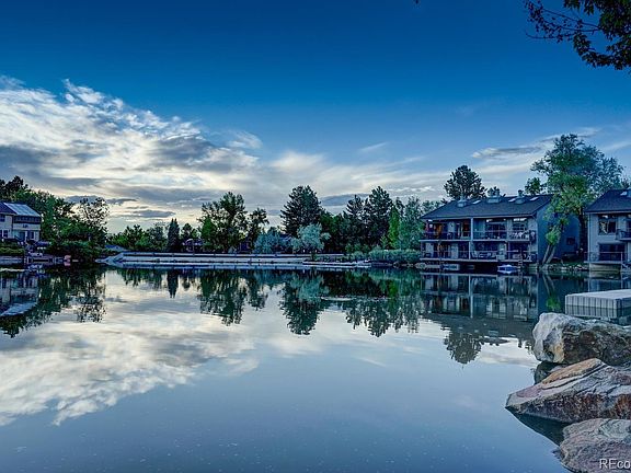 From the moment you step in the door, you will feel the serenity of this lovely townhome, and the lakeside resort lifestyle, which is nestled in the heart of the Arapahoe Lake community. Walk around the lake, paddleboat, or row your canoe and be awed by stunning sunrises, sunsets, and the reflection of the moon on the lake. Arapahoe Lake is Denver's best-kept secret where you will love the beauty of the lake through all four Colorado seasons! Every hour of the day offers beauty of its own with the full view of the lake from the living room, dining room, kitchen, and luxurious master suite. The living room features a beautiful stone fireplace, hardwood floors, and opens to the deck overlooking the lake, as does the dining room and kitchen--entertaining at its best! The kitchen features ample cabinets and solid-surface stained concrete countertops, GE Monogram stainless steel refrigerator and wine cooler, JennAire built-in oven, microwave, warming drawer, and a Fisher & Paykel double-drawer dishwasher. There is a gourmet chef's fan over the cooktop. You will awaken every morning and take in the view of the lake from the Master Suite which features a wonderful sitting area and a kiva-style gas fireplace. There are two master bathrooms, one with a luxurious tub, double-vessel vanity, walk-in closet, and water closet. The second master bath features a large shower and a vanity with a vessel sink. Beneath the stairs is the perfect place for your collection of fine wines. The mid-level of the home features the large 2nd bedroom with built-in bookshelves, which opens to the front deck of the home. The upper level features the 3rd bedroom which has a fireplace and overlooks the main level living area with shutters for privacy. The 4th bedroom is now used as a study. Peek in the small room off the upper hall. Choose how to use the space, perhaps as a small Zen spot or storage (its present use).