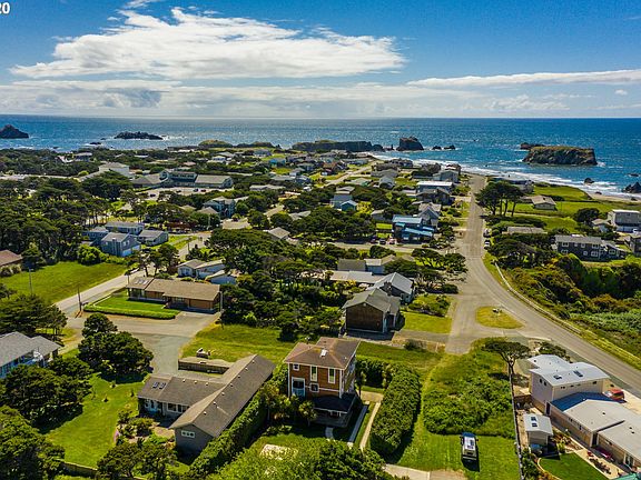 Sweeping Ocean Views to the horizon, northern sandy beach views toward Cape Arago, Coquille River lighthouse & river all from this spectacular 3 story nautically inspired custom built home. Craftsman woodwork throughout; downstairs 2BD/1BA, den, storage & spacious laundry room. 2nd floor offers open living room w/balcony, views, kitchen w/SS appliances, gas stove, 1/2BA. Breathtaking 3rd floor views, master BD/BA soaking tub/shower, W/I closet, sitting area/office. Co-agent related to seller.