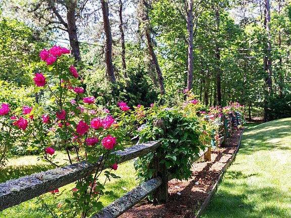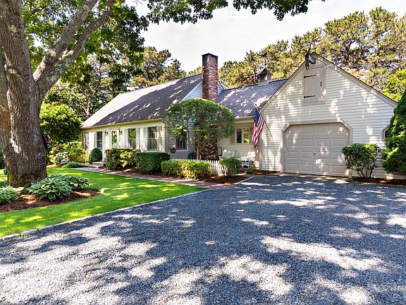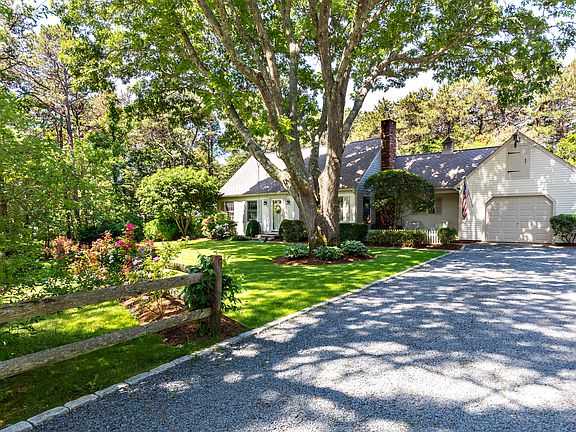 This is your dream house! It's an impeccably maintained 3 bedroom, 2.5 bath home, set on a 3/4 acre park-like setting, just a short distance to several of Eastham's bay beaches. We have a recent major update to the quartz countered kitchen, which opens onto a large deck with outdoor brick fireplace. The open dining/living area has a wood burning fireplace, hardwood floors (hardwood flooring is throughout), and recessed lighting. The first floor front-to-back primary suite is light and bright with a beautiful full bath. Upstairs are 2 large bedrooms, another full bath and a large storage area. The basement has a large finished family room. The property is planted with wonderful perennial shrubs that'll provide delightful colors year- round. Natural Gas Generator. This home has rights to association tennis and pickleball courts. Dream here!