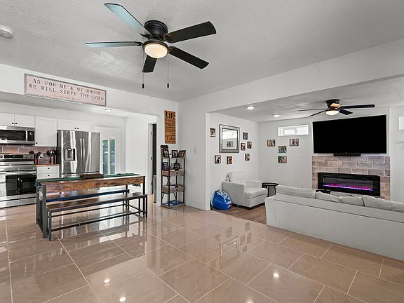 Don't miss this exceptional opportunity to own a beautifully remodeled Santa Fe-style home! Ideally located in the heart of Santa Fe, this stunning property offers easy access to all the city’s best amenities—shopping, restaurants, parks, and more. Step inside to find a warm and inviting open floor plan filled with natural light. The layout includes a large living room, den/entertainment room and dining area giving you plenty of room to relax or host guests. The primary suite is generously sized and includes its own private entrance, along with a luxurious en-suite bathroom. Large oversized gated property with dual driveways with plenty of parking, storage and entertaining space. Meticulously maintained and in pristine condition, this home is move-in ready and full of Southwestern charm. Come experience for yourself why this incredible property stands out as one of the best values currently on the Santa Fe market!