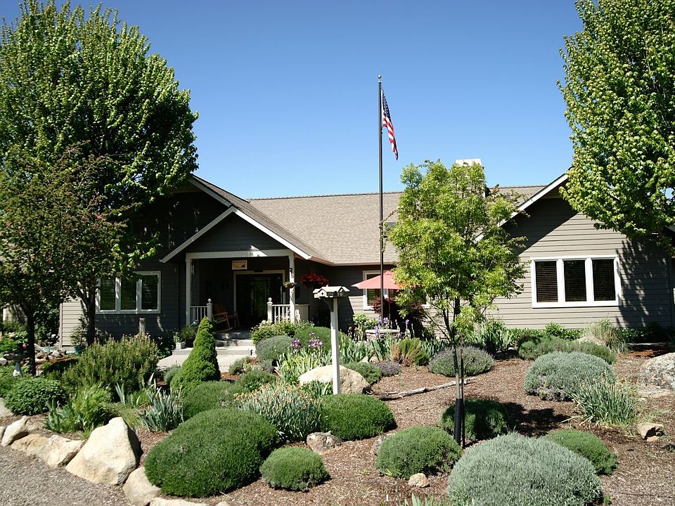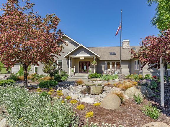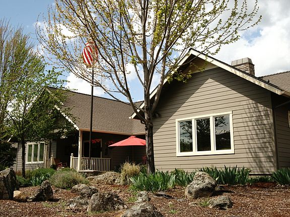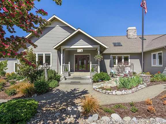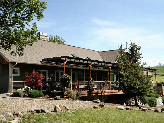 This custom property was built in 2003 by Benchmark Builders, offering 3129 sq ft with 3 bedrooms and 3.5 baths. This 5 acres of pastoral living has views of Pompadour Bluff and the surrounding valley all nestled within truly gorgeous flat or gently sloping land. The well-established and carefully chosen landscaping includes a half acre of T.I.D irrigated vineyard planted with Pinot Noir grapes. Walker Creek runs through the edge of the property creating a bucolic ambience. Inside you will find mainly single level living with a guest suite upstairs and a wine cellar below. Vaulted ceilings, windows aplenty and 8 skylights allow for the natural light to sweep across the valley and through the home. High quality materials gracefully adorn this dwelling, from the xtroidinare zero clearance fireplace, sliding glass door from sun-room to deck, oak plank floors and a stylish yet simple kitchen. Stroll over to Bella Fiore Vineyard for a pleasant afternoon or evening, without having to drive!