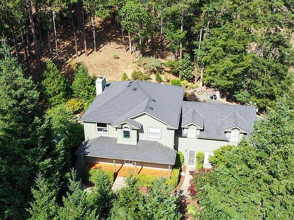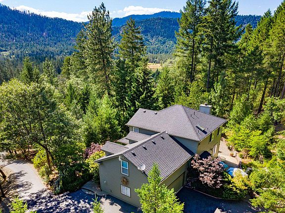 Peaceful Easy Living! Custom built home just down the road from the Rogue River & Ferry Hole boat ramp on a private 2.08 acres backing to hundreds of acres of BLM. Featuring 3 bedrooms 2.5 bathrooms with tile entry, office, Living room including floor to ceiling rock fireplace, patio access and gorgeous hardwood floors that extend into Dining area open to updated kitchen w/ Cherry cabinetry & granite counters. Upstairs includes two spare bedrooms, guest bathroom with tub/shower and a large master bedroom you will feel spoiled in with en-suite bathroom w/ travertine tile, double sinks, maple cabinets, jacuzzi tub, & walk in closet! Finished bonus room above garage provides extra space for hobby or craft room. Mud room off attached garage w/ plenty of storage, paved driveway w/ security gate! All this on an easy to maintain park like & tranquil setting w/ Koi pond & beautiful cascading waterfall, private fire pit & sitting areas that perfectly blend into surrounding forest. Call today!