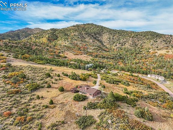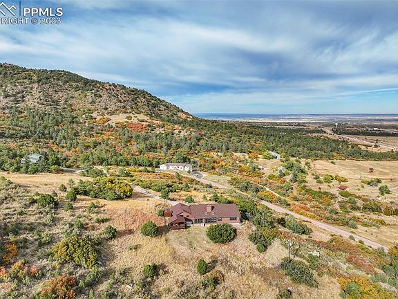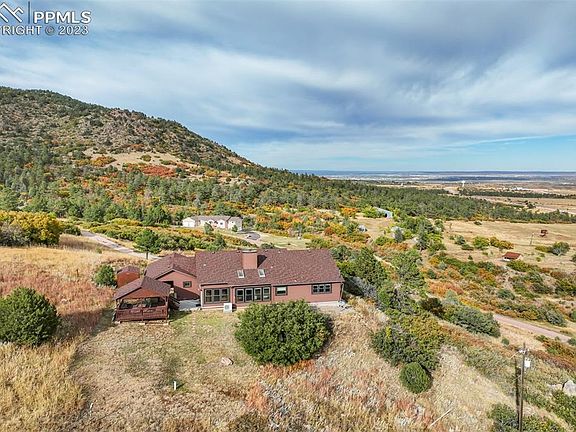 Welcome to your own slice of Colorado! This one-owner home is situated on 6.26 private and peaceful acres offering breathtaking 360 degree views. Just a quick 10 minutes away from Colorado Springs, this "rancher" style home has a spacious floor plan with all 2,164 square feet on the main level. With 3 bedrooms, 2 bathrooms, a formal dining room, living room, family room, laundry/mud room, and a 2-car attached garage, there is plenty of space for everyone. Step onto the large (14'x16') covered deck behind the house and take in the stunning views of the beautiful foothills surrounding the property. The roof was replaced in 2019 and inspected in Fall of 2023. The home features low-maintenance exterior siding, 2 Mitsubishi units for cooling + heat, a large shed for extra storage, vaulted ceilings, a bay window in the dining room, a cozy wood- burning fireplace in the living room, wood floors in the kitchen that extend to a charming sitting area in the family room. Additional features include a 200 Amp electrical panel, no HOA, Tuff Shed (8'x10') for storage, and a built-in bench with storage in the living room. The home was built in 1987, so there are plenty of opportunities for updating and personalizing to make it truly your own. The location of this home feels so remote and private, but it is just 15 minutes to downtown Colorado Springs, 8 minutes to Cheyenne Mountain State Park for hiking and biking, and a super quick commute to Ft. Carson.