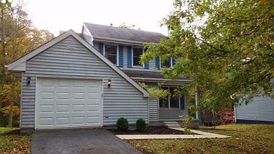 Update 2 story with new carpet and paint. Features include living room with fireplace, formal dining room and kitchen with gas stove and built-in microwave. Finished lower level family room with recessed lighting and bonus fourth bedroom. Front porch and spacious deck with woods in the rear.