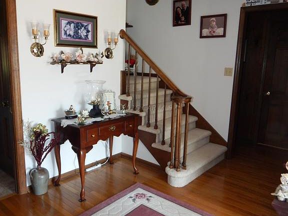 Beautiful Brick Colonial Home on 44.57 acres with 4 large bedrooms, 2 large full bathrooms, and 2 half bathrooms. This home features spacious rooms, hardwood floors, an office, living room with a floor to ceiling brick fireplace, sunroom, breakfast nook, formal dining room, updated kitchen backslash and countertops, attached 2 car garage, blacktop driveway, mature trees and gorgeous landscaping! Included is an additional 3 bay detached garage with a full bathroom, office, and walk-up full storage attic. A must see!