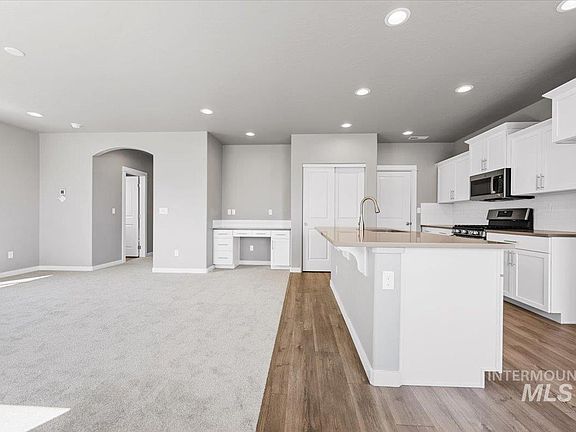 The 1743 square foot Middleton combines luxury and space in a two-story home plan including a 3rd car garage. The first floor features an expansive living room and adjoining dining room, both overlooked by an open kitchen that offers ample quartz counter space and cupboard storage with a built-in pantry. Both kitchen and dining room finished with Mohawk laminate flooring. Upstairs, the extravagant master suite has a luxurious dual vanity bathroom with stand-up shower with glass enclosure, as well as an spacious walk-in closet. Upstairs includes a laundry room and 2 additional rooms. The garage is complete with a four foot extension, third car bay and comes insulated. Additional windows have been added to allow additional light into the home.