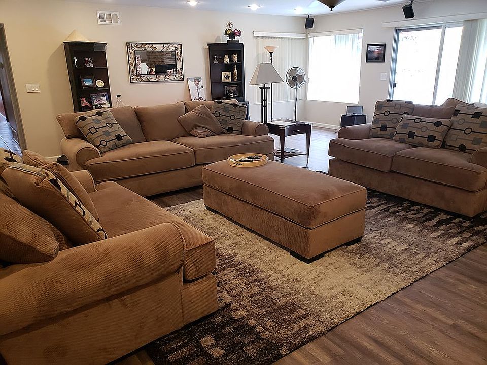 This gorgeous 3 bedroom, 2 bath home has many upgrades throughout the entire home such as wood floorings, luxury vinyl plank flooring in family room, newly remodeled bathroom with new cabinets, lights, switches, vent, sink, faucet, paint, and LVP flooring. granite kitchen countertops, bbq deck patio with a pool, an oversized family room with two beautiful stone fireplaces. New solar panels, Pentair gas pool heater & efficient variable water pump! Excellent location! Close to a freeway, shopping centers, hospital and great schools. NO HOA or MELLO! And don't forget the giant avocado tree!