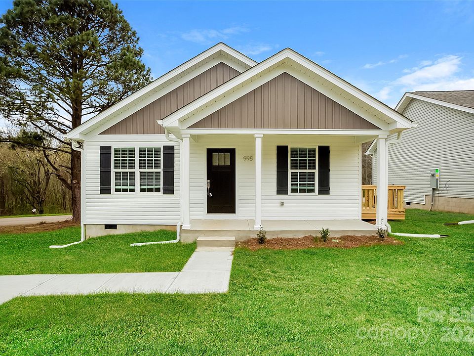 Welcome to this Like-New Construction home in Concord! This fabulous ranch presents itself on a mature corner lot and showcases a covered front porch, open floor plan, faux wood blinds, and more! Spacious living room leads right into the dining area flooded with natural light brought in from the sliding glass doors. The galley-style kitchen flaunts stainless steel appliances, white shaker cabinets, granite countertops, and plenty of bar seating! Luxury LVP flooring throughout the main areas of the home and carpets in all bedrooms! The sizable primary bedroom has a great walk-in closet, and an ensuite bath featuring a granite topped vanity and shower with sliding glass doors. Secondary bedrooms are a nice size and the guest bathroom has a single granite vanity and tub/shower combo! This beauty is move-in ready and ready for its new owners to add their personal touches.