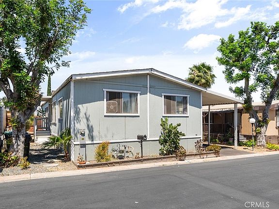 Welcome to Corona West Mobile Home Park! Prepare to fall in love with this sleek upgraded 3 bedroom, 2 bathroom home perfect for entertaining! Enjoy an open, spacious floor plan with newer flooring, recessed lighting and ample wall space for large mirrors, artwork and family photos. The main living area offers plenty of space for large living room and dining room furniture. A wall cut-out opens the dining room to the kitchen – and what a kitchen it is! You will love this contemporary kitchen with upgraded counter tops, stainless steel appliances, double ovens, a built-in range, a steel basin sink with arc faucet and custom ceiling treatment. You have built-in storage with shelving for your favorite display items. Relax in the primary suite with and ensuite bathroom, double sinks, a soaking tub and separate shower. There are two more generous sized bedrooms and a full bathroom down the hall. This home offers an indoor laundry area and long attached carport. Corona West is an all-ages mobile home park with beautiful facilities perfect for your active lifestyle! Enjoy the pool, spa, BBQs, clubhouse and much more. We are a welcome sight for commuters near restaurants, shops and more for your convenience. Take a close look at this exceptional home today!