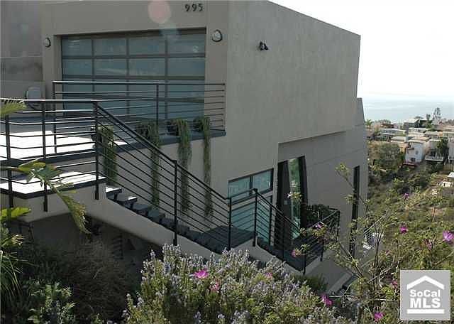 Breathtaking Laguna Beach home custom designed by renowned architect Mark Singer featuring panoramic ocean, Catalina, and canyon views from all levels. This contemporary & very spacious 2 bed, 2.5 ba. + office offers privacy & tranquility w/daily sunsets to enjoy from anywhere in the home. Premium upgrades include SieMatic aero cabinetry, Subzero & Bosch appliances, & granite. Imported Venetian plaster on walls, ceilings, in garage, closets, etc. Flooring: maple hardwood, polished concrete, porcelain & granite tile including patios. 2 Fire-on-ice fireplaces, new tankless water heater, in-ceiling fire-sprinklers, whole-house audio sys, LAN cabling, highdef wiring, surround & speakers wired throughout including intercom & security system, remote-controlled solar shades on all windows, central A/C and vacuum. Ocean-view master suite w/maple built-ins, dual sinks, granite, wet bar, jacuzzi tub & a fire-on-ice gas fireplace. Office and 2nd room have sliders w/views & custom built waterfalls. Oversized 2 car gar. w/rare flat-driveway entry, a storage room, SL E-Coat flooring, storage racks & ocean views! NEW: Bi-fold panoramic glass slider doors in master & main level ** VACANT OCEAN VIEW LOT BEHIND THIS HOME IS NOW INCLUDED **