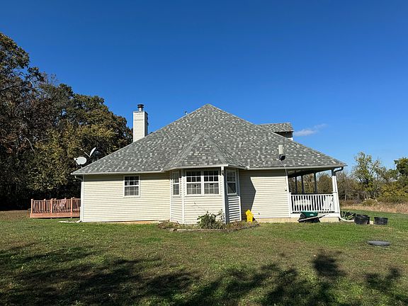 Pictures can't do justice of this beautiful home and setting. This almost squared 3 acre lot features a gorgeous stocked pond and gently sloping yard with a bunch of fruit trees such as mulberry and persimmons and nut trees along with the beautiful 4 bedroom and 2.5 bathroom home. Large master suite is on main level with other bedrooms being on the upper level. Interior design is American farmhouse. And to top off safety concerns is a steel tornado shelter mounted inside the garage. If you are tired of the rat race, retreat to your own little piece of serenity and paradise.