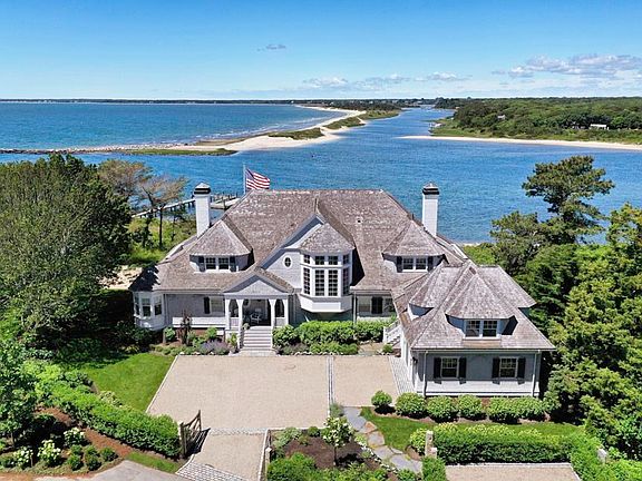 This exquisite waterfront property in Osterville, MA, features a substantial deep-water dock, pristine beach, and unparalleled water views of Nantucket Sound. Completely transformed in 2020 into a stunning oasis with 5,400 sq. ft. of living area, this home is a masterpiece of design and craftsmanship. The kitchen serves as the heart of this home, featuring top-of-the-line appliances and modern finishes. Adjacent to the kitchen, the dining room, family room and living room exude sophistication and comfort. Large windows embrace the panoramic views, and 2 sets of Nano style doors open to accentuate the airy feel. The primary suite on the 2nd level epitomizes luxury with a private office, luxurious bath, balcony and outstanding views. 2 ensuite bedrooms with views complete this level. A porch along the back of the house provides multiple areas to take in the captivating views. With 1.06 acres and over 300’ of water frontage, this offering is for the most discriminating buyer.