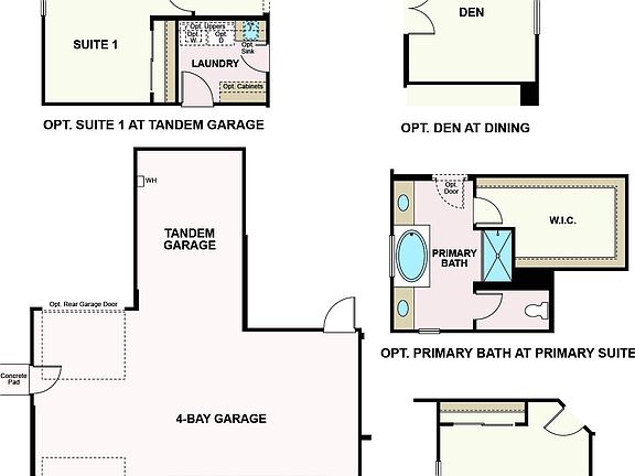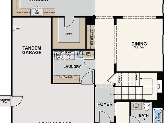 Entry into the Saffron is greeted by a dramatic two-story entrance and a view of the open great room. The open floor plan integrates the formal dining space with the great room and kitchen, maximizing the livability of the home. The kitchen features an oversized granite island and wrap-around counters, leading to a generous pantry, perfect for the needs of a growing family. The laundry room provides a private space to unload from the day when entering from the garage. A discreet coat closet is tucked under the stairs leading to the second story. Once upstairs, a spacious loft takes advantage of views towards the front of the home and provides space for numerous furnishing configurations. Near the landing, dual bedrooms flank a full hall bath and a linen closet. The oversized Primary Suite, located at the rear of the home, boasts numerous windows, allowing maximum natural light to illuminate the space. Dual vanities in the en-suite bath frame a window overlooking the side yard, washing the space in another layer of light, while a sprawling walk-in closet completes the space.4 Bedrooms / 3 Baths / 3-Bay GarageOpt. 4-Bay GarageOpt. Suite at Tandem GarageOpt. Covered PatioOpt. Den at DiningOpt. Bedroom 5 at LoftOpt. Tub at Primary Suite Bath