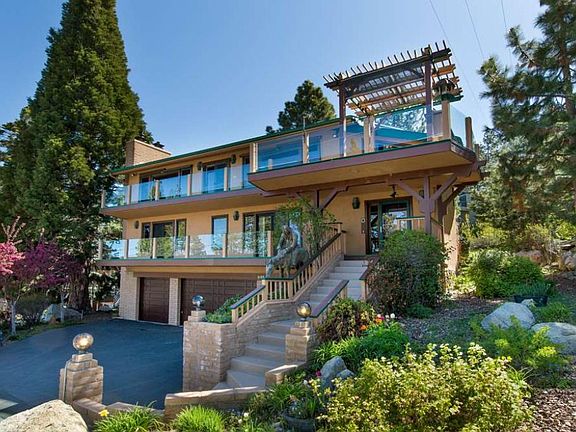 Location, location, location!! At the end of a cul-de-sac bordering Forest Service land with fantastic Lake Tahoe views, this is a rare opportunity to own one of the best locations in desirable Skyland area. Beautifully landscaped with your own "snow sled hill" and dog run! A dumb waiter serves the two levels above the four-car garage with finished basement area and generator. Lovely remodeled gourmet kitchen, two gas fireplaces, "free floating" curved staircase and lake-view decks. Hurry, won't last!