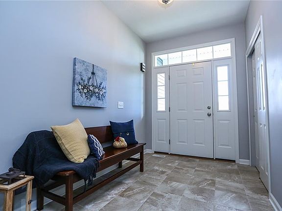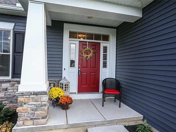 Nestled on a quiet, private drive, this 2017 built RANCH style home has 4 bdrms & 3 baths! Gorgeous dark wood floors greet you in the foyer and continue throughout. Open concept floor plan w/all the bells & whistles! Soaring ceiling in the family room w/stone gas fireplace & wood mantel. True chefs kitchen w/stainless appliances inc. a gas stove, breakfast bar island, granite countertops, tiled backsplash and a large dining area w/access to the stone patio and beautiful rear yard with lush landscaping. 1st floor laundry, fresh paint and new carpet! The owners suite is large and luxurious w/glass door shower, granite topped vanity w/double sinks and a huge walk in closet, a true retreat!! The 2 other bedrooms on the 1st floor are generously sized with a full bathroom with double sinks. The incredible, finished lower level adds even more living space. Large living/media area, separate office/gym space with french doors, huge bedroom w/egress window and a large full sized bathroom. Plenty of storage space too! This beautiful home with check all the boxes on your wish list! A true 10++!