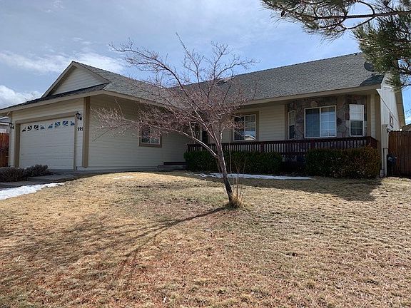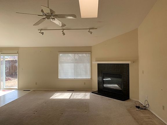 Incredible mountain views! This open floor plan with vaulted ceilings and a bay window is one of a kind. There is a large covered porch and the outside has been recently painted. It backs to the park and has RV parking. Master has ceiling fan and guest bedrooms have ceiling light fixtures, laundry room has a sink and living room has two skylights.