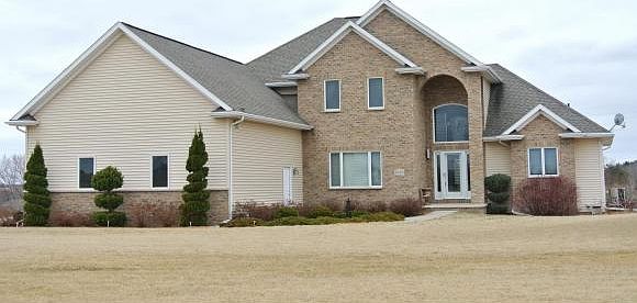 Classic custom w/contemporary flair, set on awesome 5 acre lot w/unobstructed views of the Fox River! Grand 2-story foyer w/large arched window & open staircase to 2nd floor loft overlooking 2 story great rm. Kitchen/dinette w/custom cabinets, huge counter island w/granite counters. Electrolux stainless appliance package. Master suite w/huge walk-in closet and spa style bath w/double shower heads.